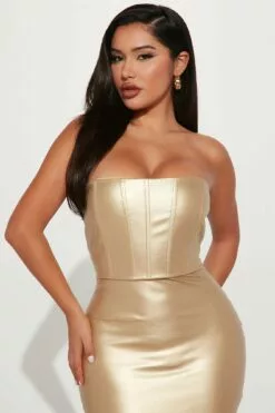 Fashion Nova Lea Metallic Midi Dress – Gold