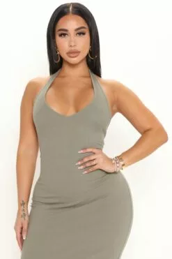 Fashion Nova Isabelle Halter Midi Dress – Olive