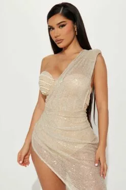 Fashion Nova Queen Sequin Maxi Dress – Champagne